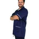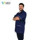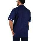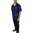 El diseño incluye cuello sport, bolsillos funcionales al frente y detalles en vivo blanco, que aportan un toque elegante y diferenciador. Su corte amplio permite libertad de movimiento, ideal para jornadas laborales activas.
