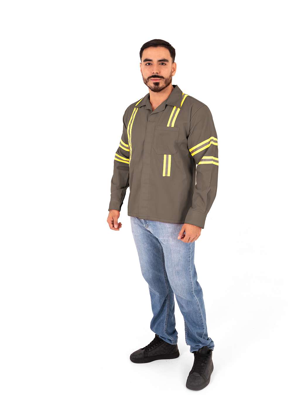 Camisa alta visibilidad color caqui con reflejantes