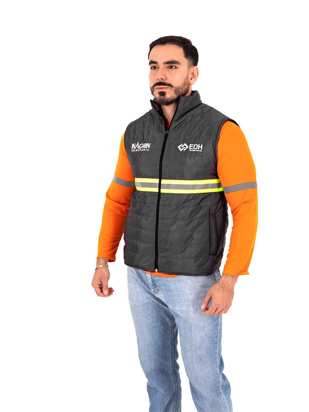Chaleco térmico ligero diseñado para brindar protección contra el frío sin limitar la movilidad. Cuenta con acolchado tipo capitonado para mejor aislamiento térmico, cierre frontal completo y cuello alto que resguarda del viento. Incluye franja reflectante de alta visibilidad en la parte frontal y posterior, ideal para actividades laborales en exteriores o en condiciones de baja iluminación.