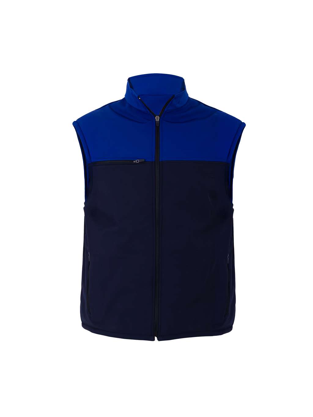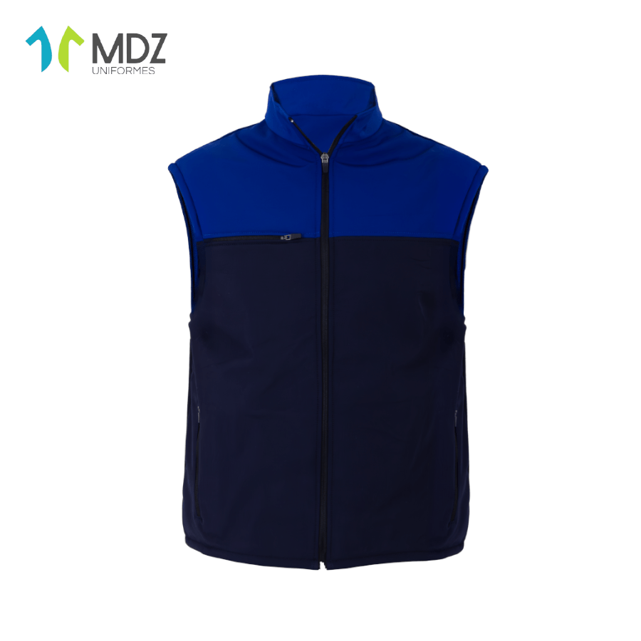 Chaleco combinado gris con azul rey y cierre frontal