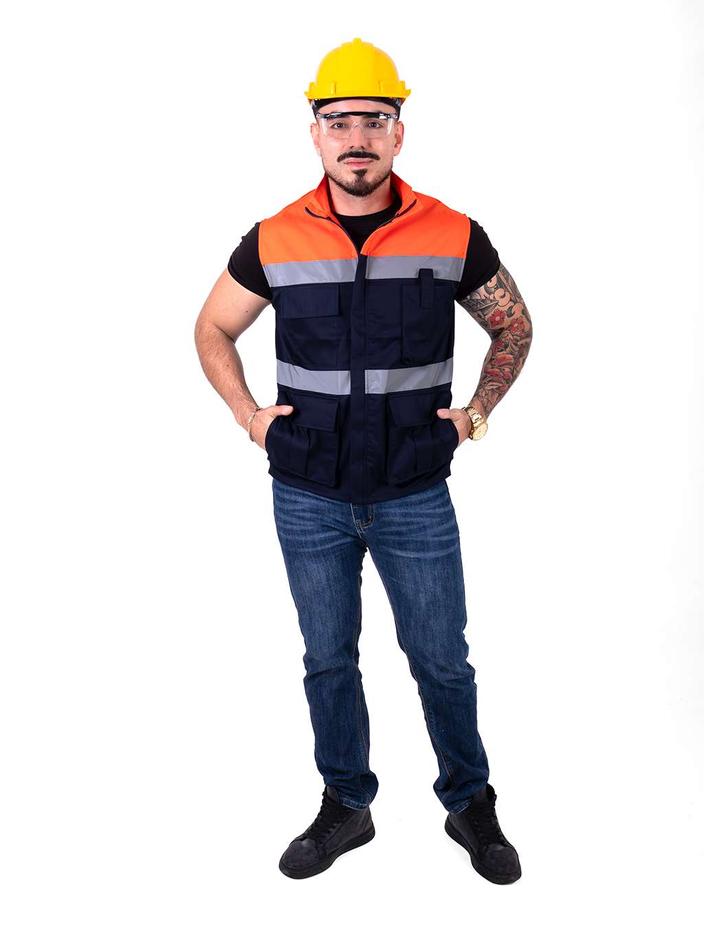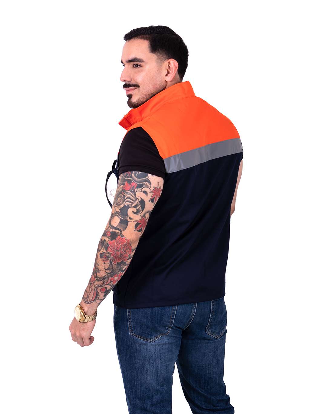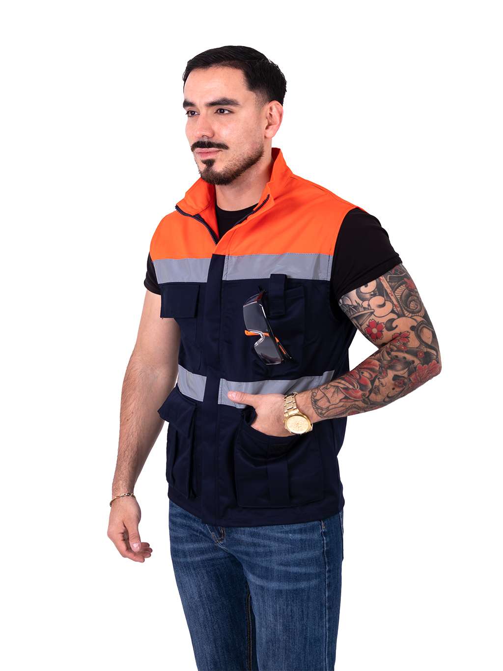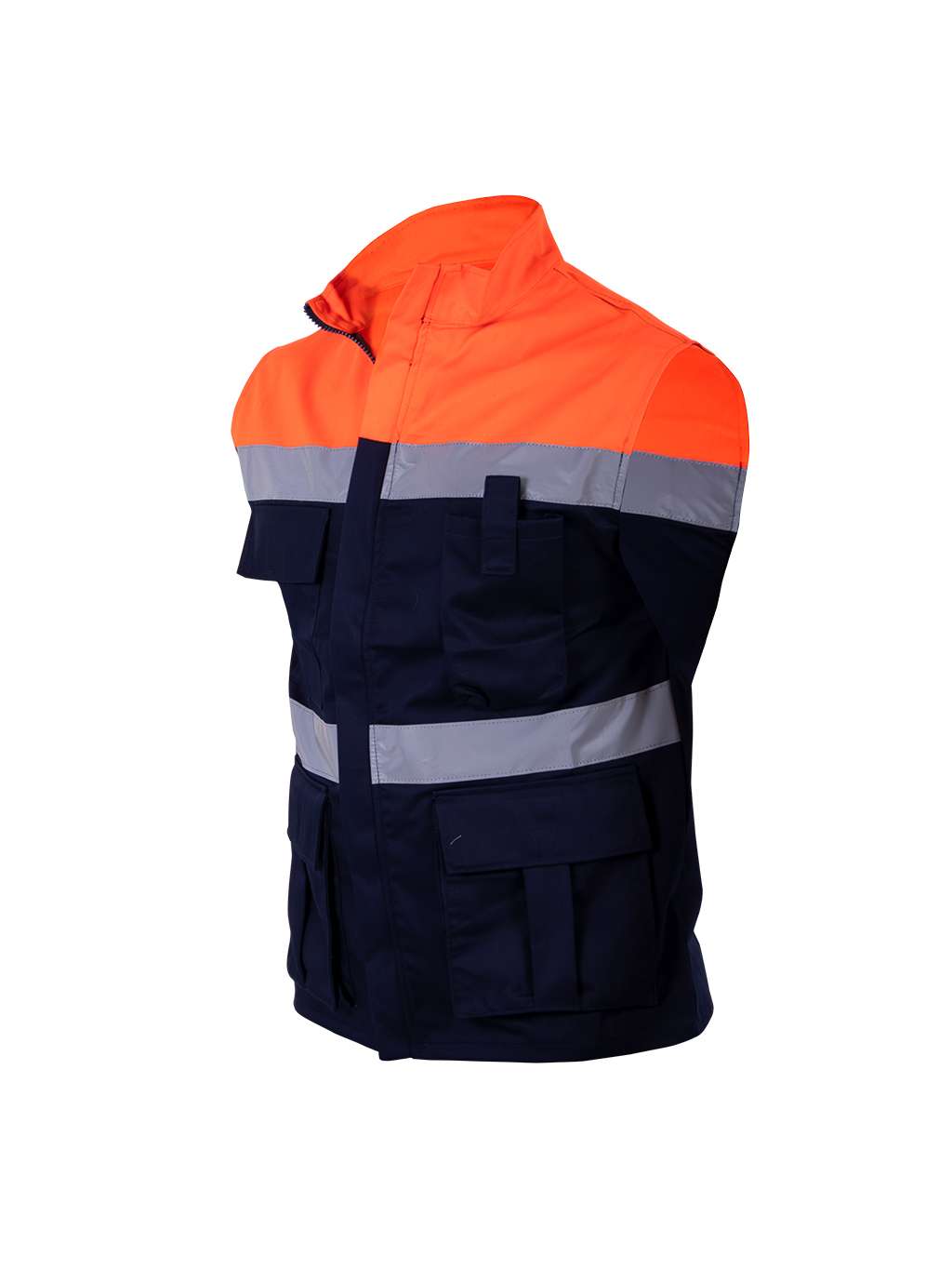 Chaleco de seguridad bicolor azul marino con naranja