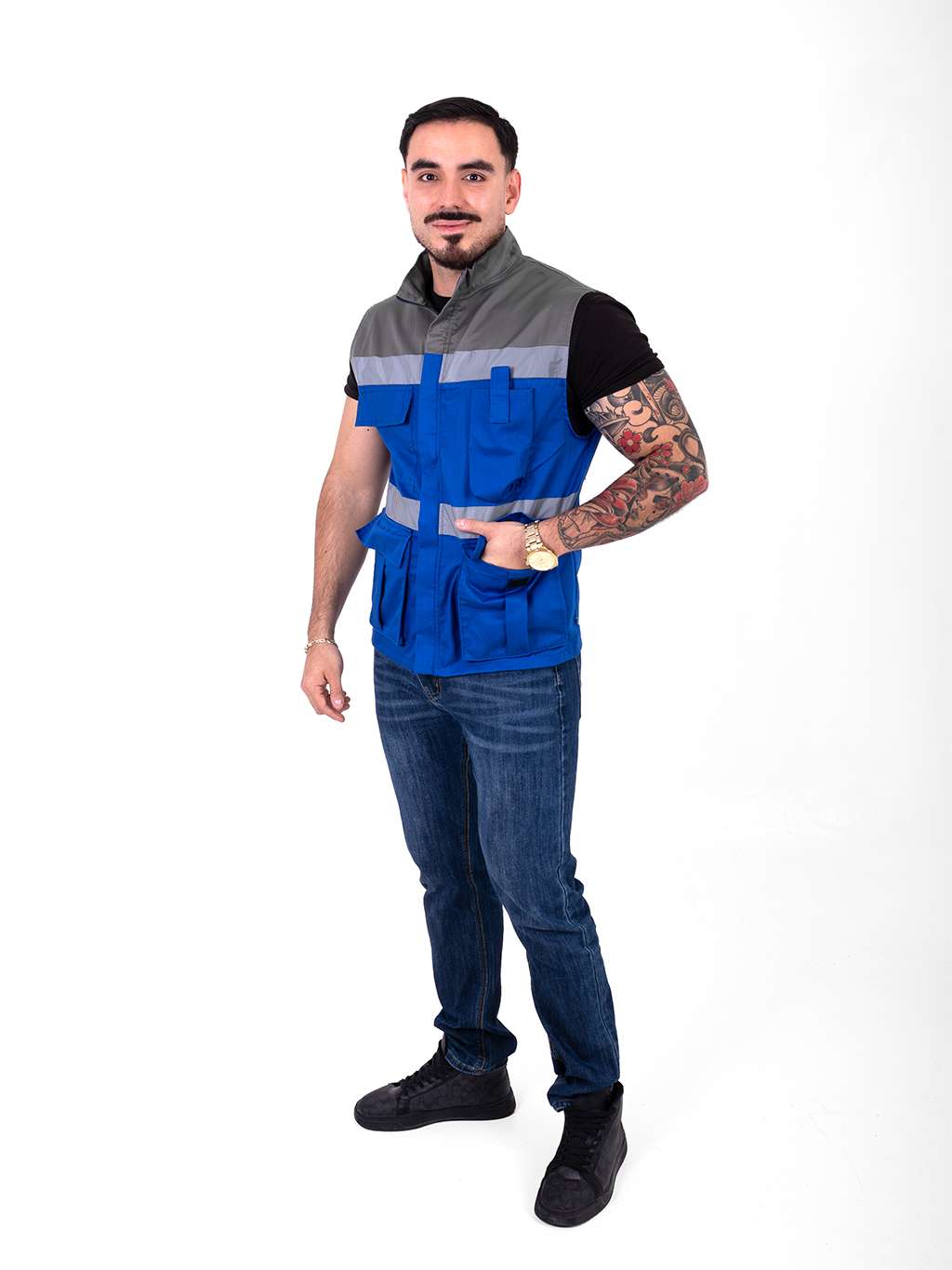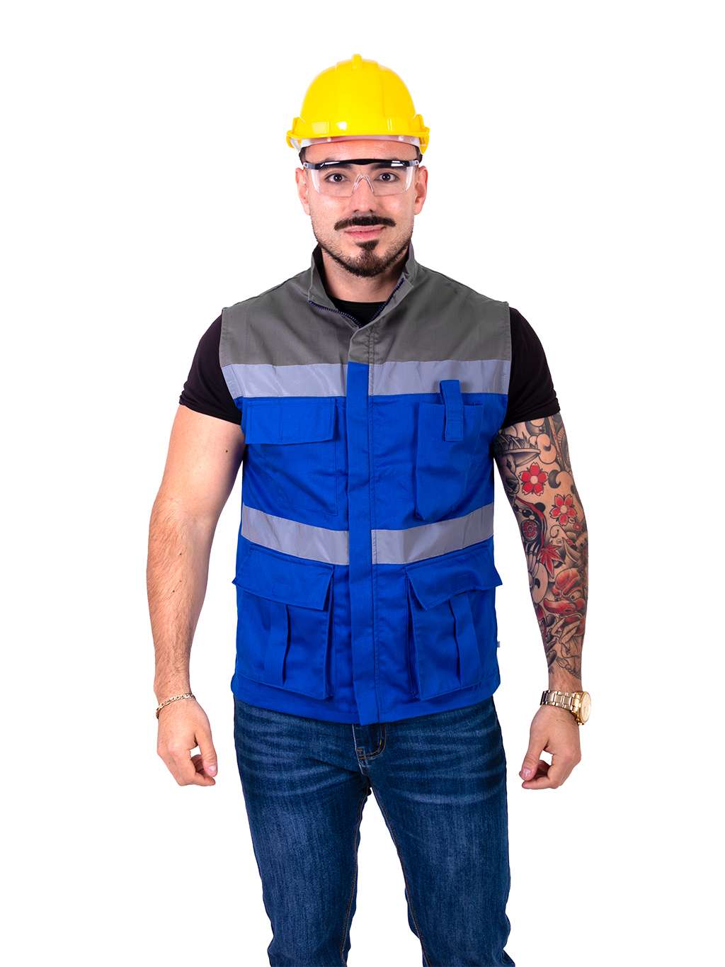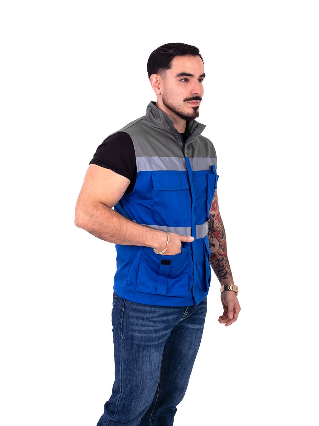 Chaleco de seguridad bicolor azul rey con gris
