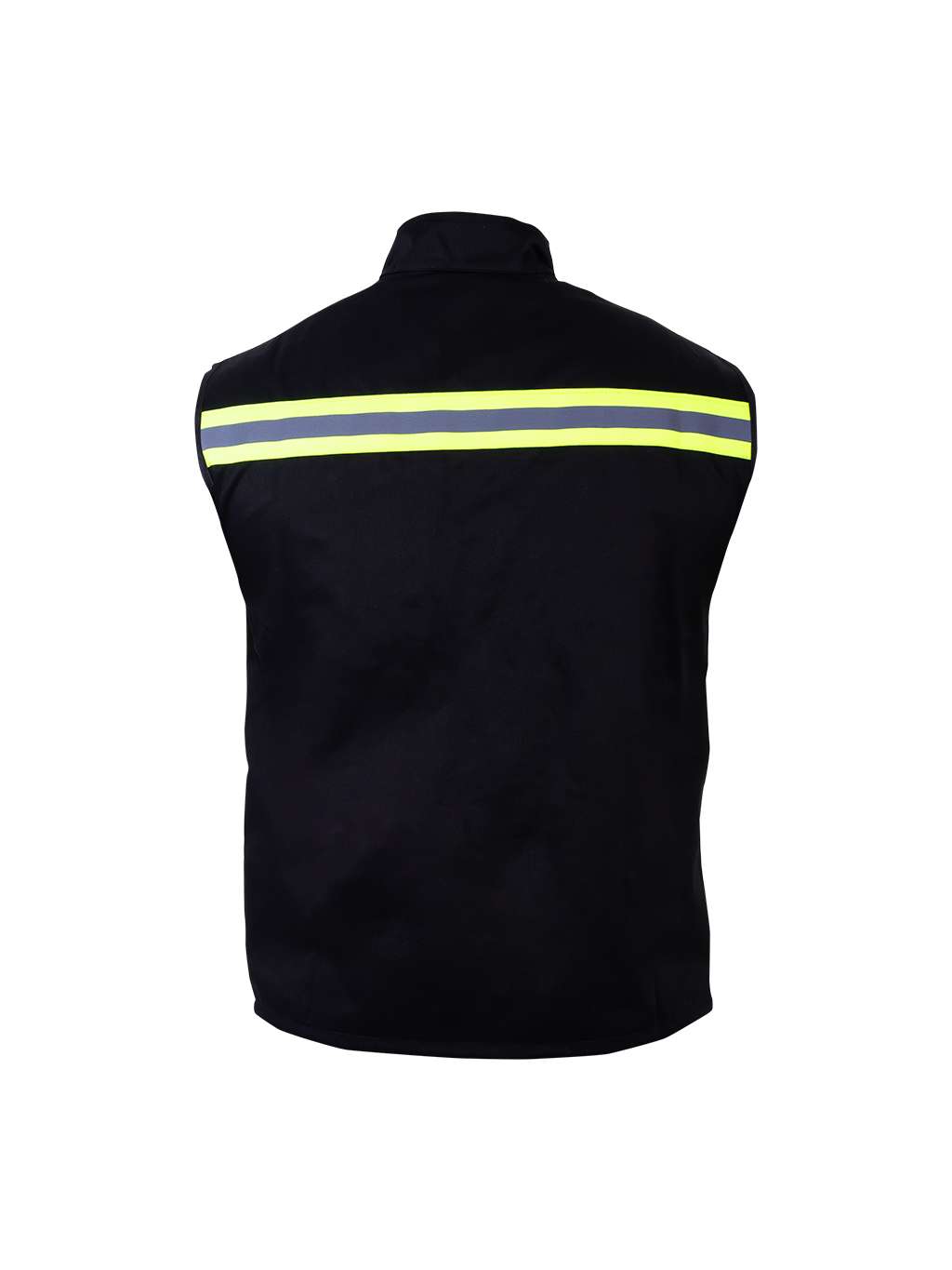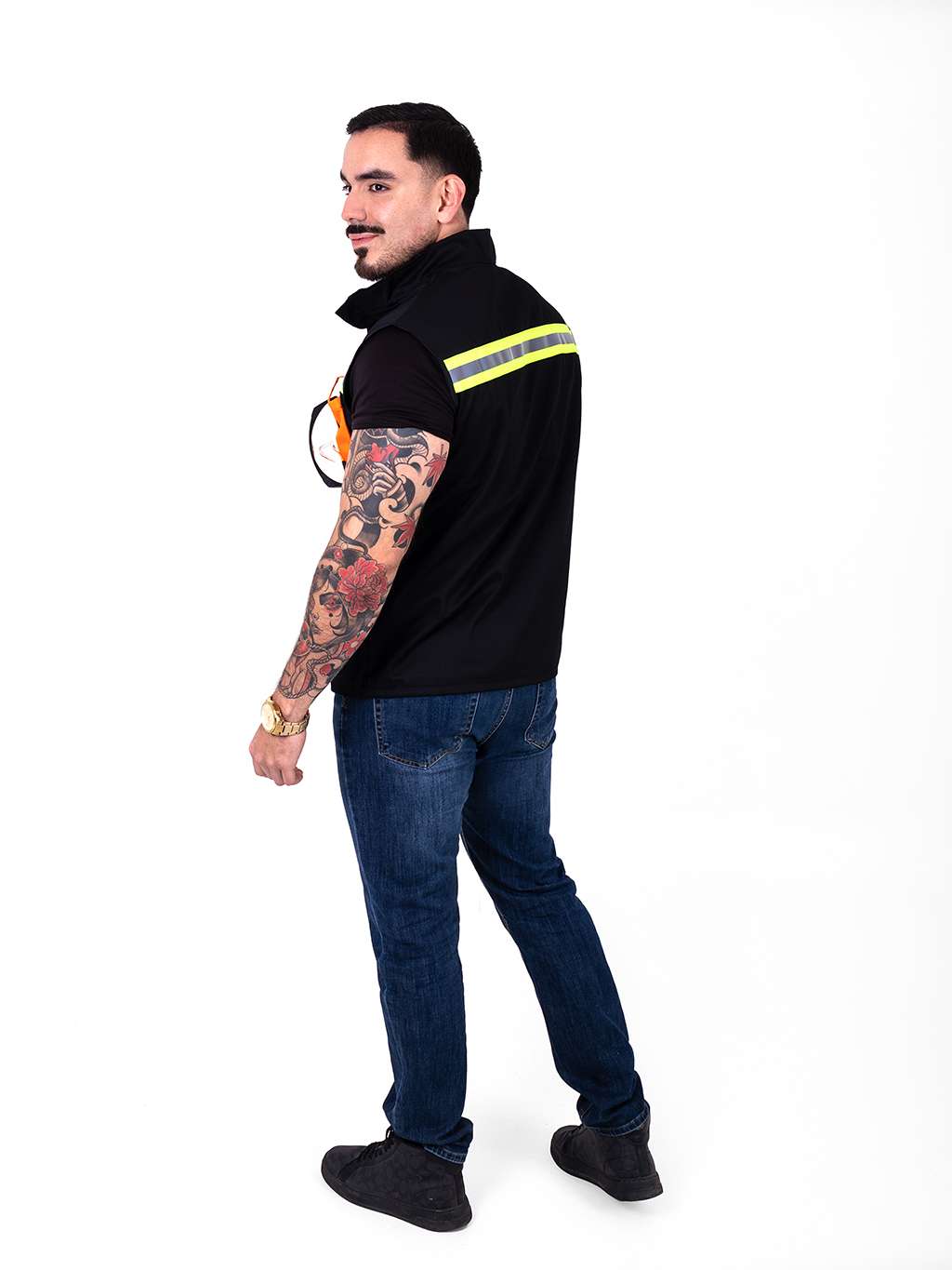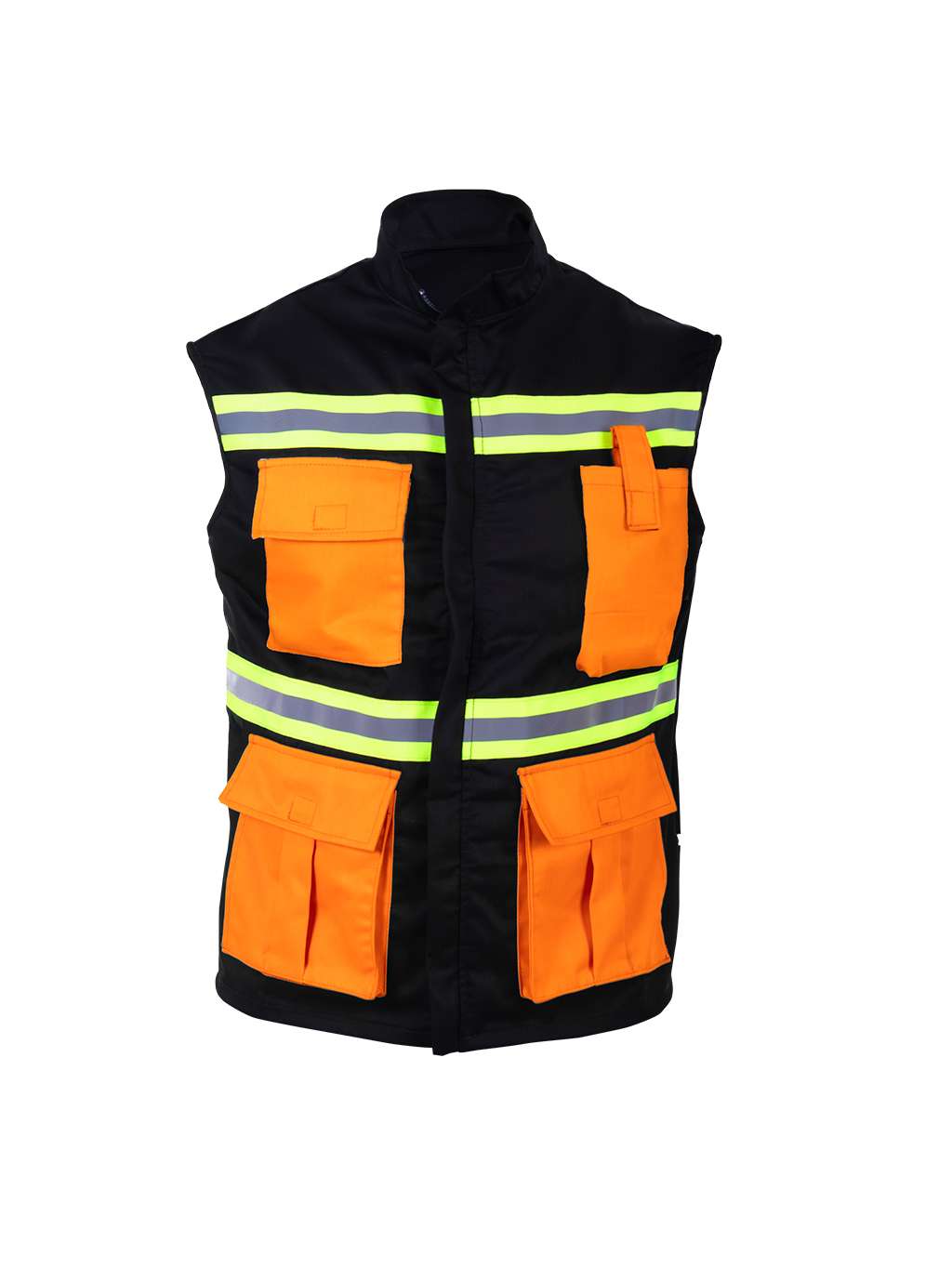 Chaleco de seguridad bicolor negro con bolsas naranjas