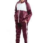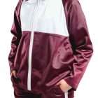 Chamarra confeccionada con combinación blanco con tinto al frente incluye cuello de la misma tela, 2 bolsas a los lados y cierre de nylon.