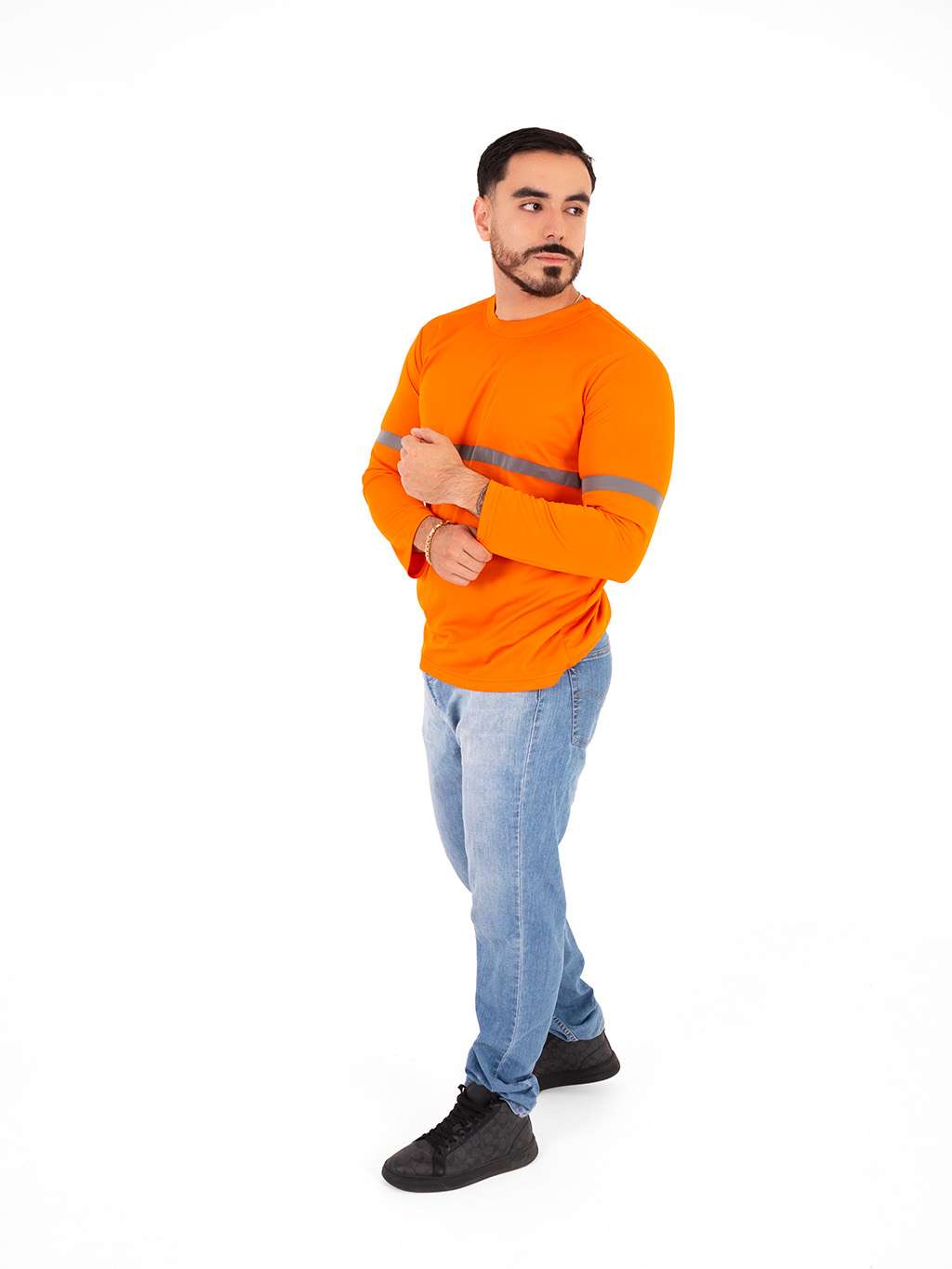 Playera de alta visibilidad en color naranja fluorescente, diseñada para brindar seguridad y confort en jornadas laborales. Fabricada en tela dryfit ligera y transpirable, ideal para climas cálidos y actividades de esfuerzo físico. Incorpora cintas reflejantes en pecho y mangas para mejorar la visibilidad en zonas de riesgo o trabajo nocturno.